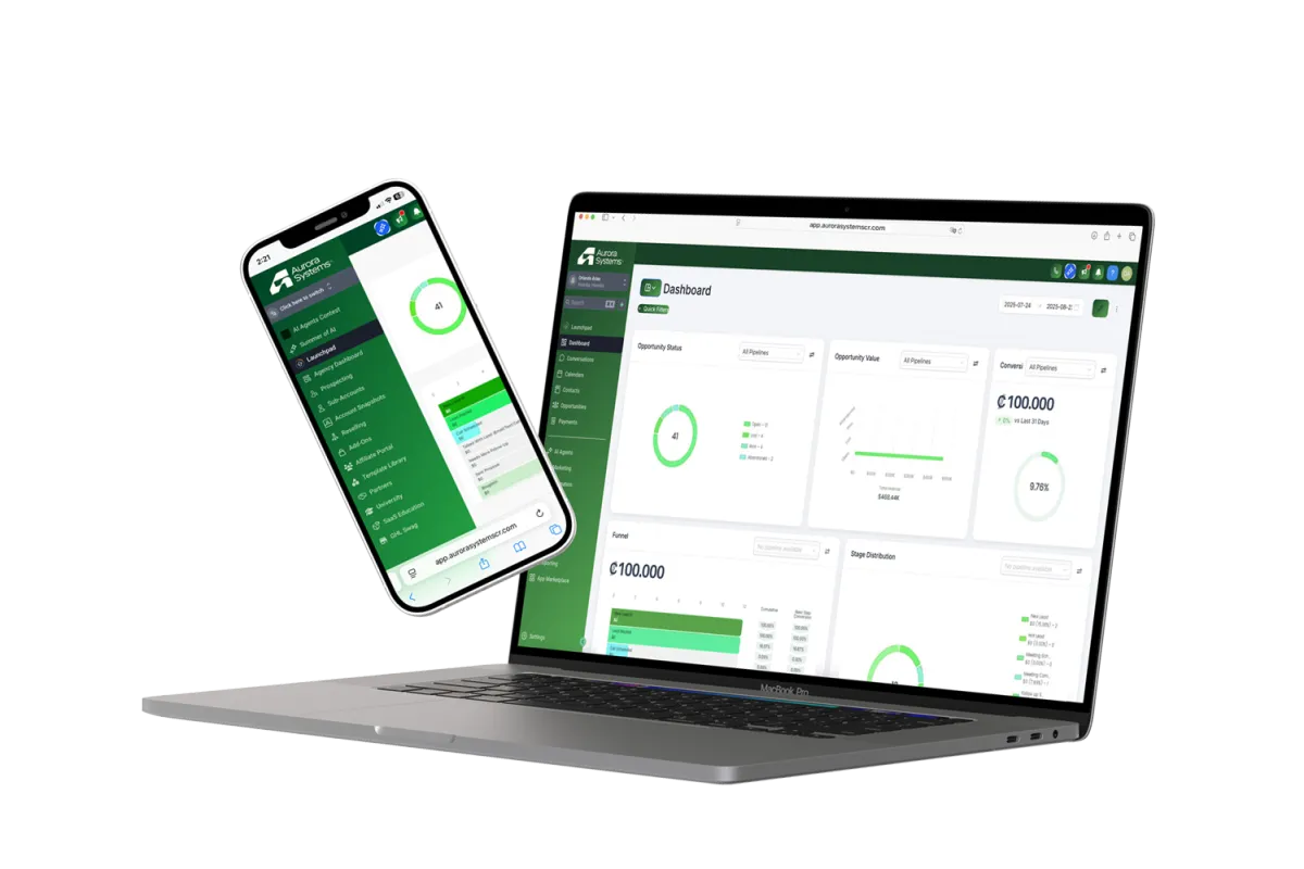 En Aurora Systems entendemos lo frustrante que es perder clientes por desorden, falta de seguimiento o herramientas que hablen entre sí. Nuestro sistema integra todo lo que necesitas en un solo lugar para que dediques tu energía a cerrar más ventas y no a estar pendiente a apagar problemas.